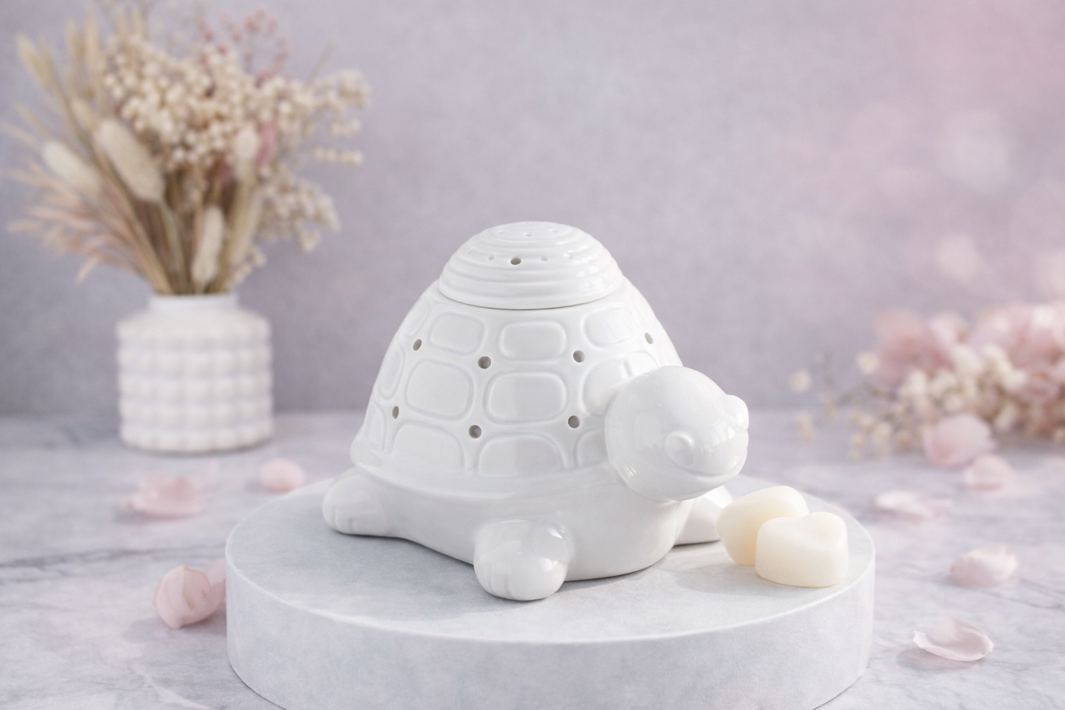 Apportez une touche de douceur et d'originalité à votre intérieur avec Francklin , un parfum brûlé en céramique blanche en forme de tortue.