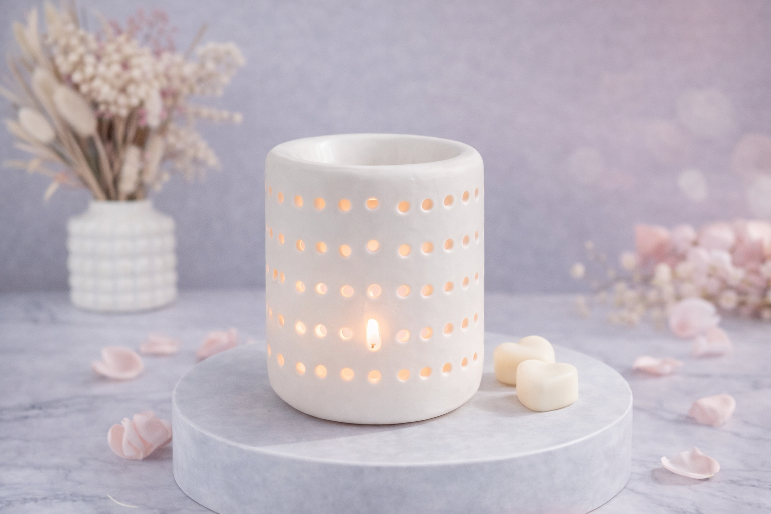 Découvrez Lunéa, un brûle-parfum en céramique blanche au design épuré et lumineux, pensé pour sublimer votre intérieur avec simplicité et raffinement.
