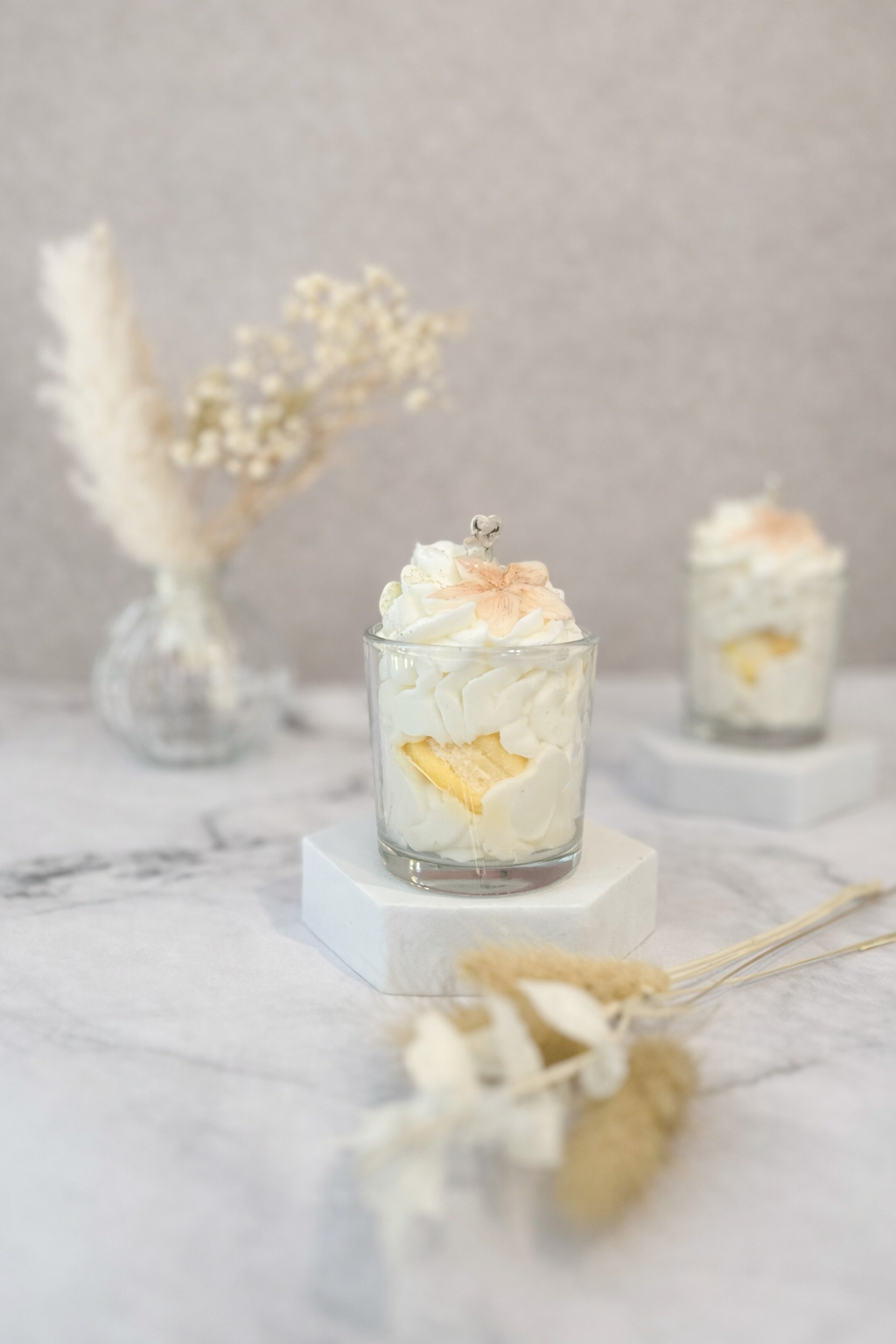 Bougie gourmande artisanale parfum Macaron-Vanille - Format Délicat 186g